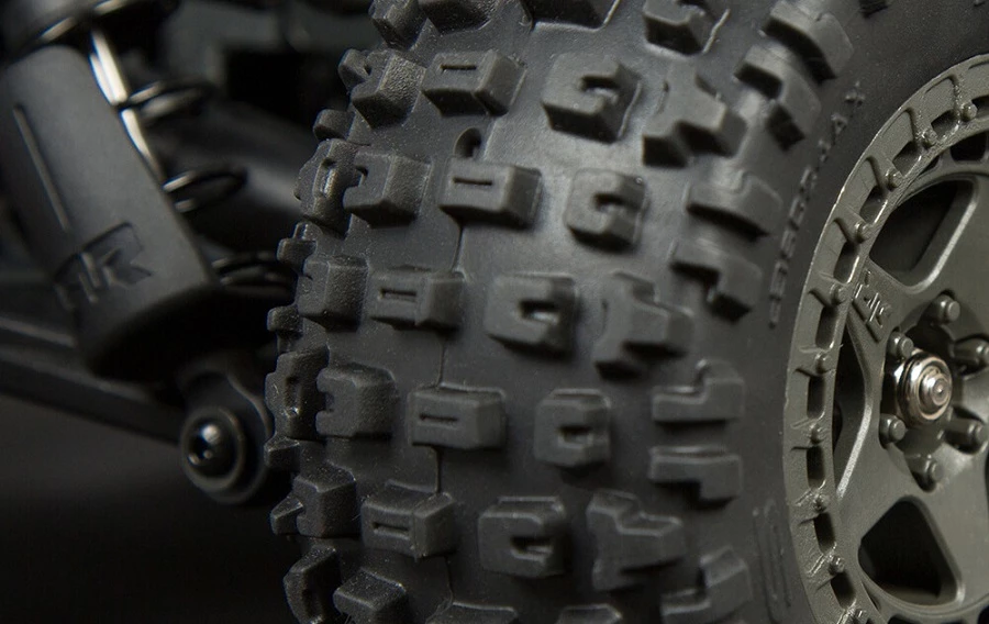 The self-bleeding, oil-filled shocks, now with silicone O-rings, use a tried and tested, coil-over design for simple maintenance and amazing handling. Their innovative rod-end has a molded-in spring perch for extra toughness. Extended height dirt defenders and a close-fitting body limit the amount of dirt and debris that can get into the chassis tub. Front and rear bumpers offer defense against impacts.