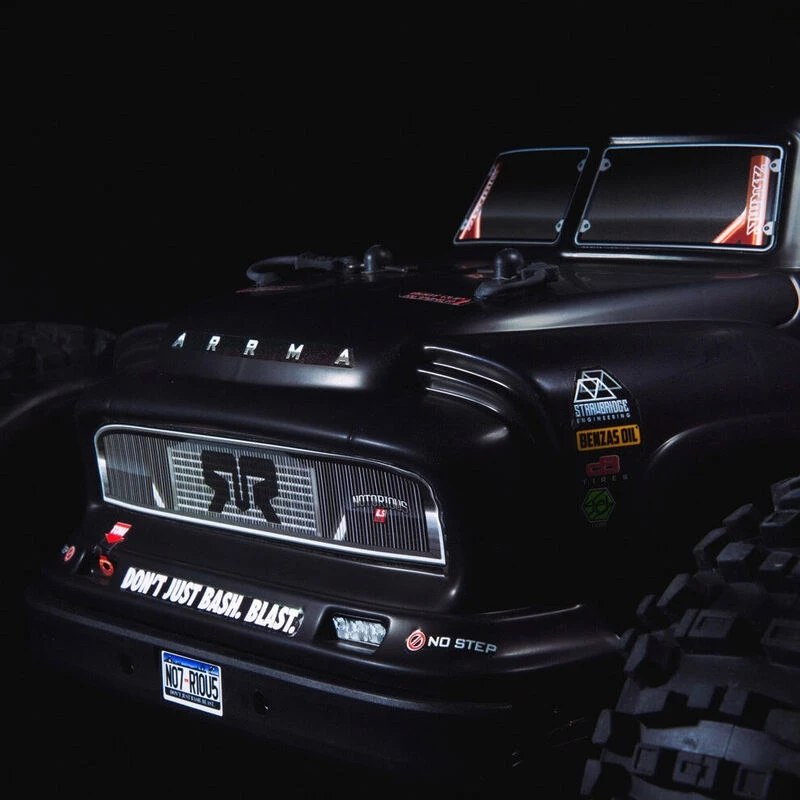The 1/8 scale NOTORIOUS 6S BLX Stunt Truck 4WD unleashes wheelie-popping, back-flipping, outrageous action with one-of-a-kind style. Its custom 1950s body offers more than streamlined good looks and a matte black or matte blue factory finish. Its exclusive ARRMA® “Real Steel” effect adds eye-catching realism that only improves with severe bashing. The more scratched and scarred your Stunt Truck becomes, the more authentic and amazing it looks.