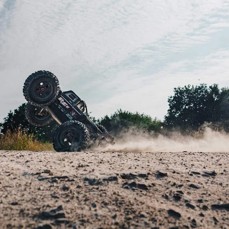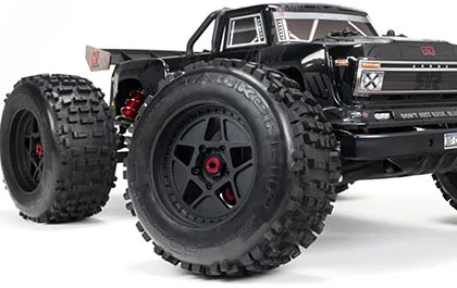 The OUTCAST 6S BLX Extreme Bash Stunt Truck blasts over dirt, asphalt, and grass on tough stunt truck wheels outfitted with multi-terrain dBoots® Back-Flip tires that provide all the traction youll need to flip, grip, wheelie, and spin. A high downforce wing helps keep the vehicle grounded and a wheelie bar is ready for when only 90 degree wheelies will do.