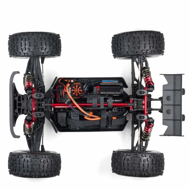 ARRMA® engineers have given the OUTCAST 6S BLX Stunt Truck the Extreme Bash premium treatment! EXB hardened components increase toughness everywhere it counts, resulting in a 1/8 scale stunt basher with virtually unstoppable strength. Its also the first ARRMA® EXB vehicle that comes ready-to-run with a Spektrum AVC® radio and Spektrum 6S brushless power system giving you the muscle and control to perform standing backflips, wheelies, and huge jumps, and to reach 60+ mph speeds.