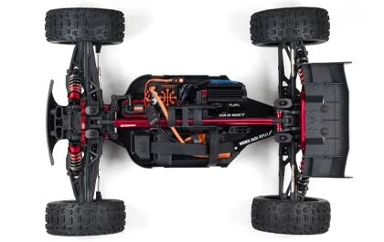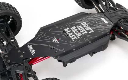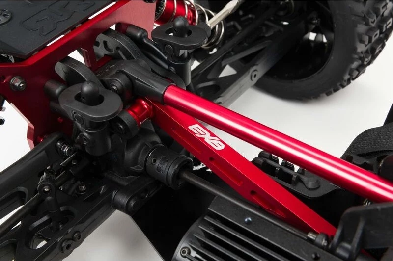 “Designed Fast, Designed Tough” may be an understatement when describing the TALION 6S BLX Extreme Bash Speed Truggy. Made of strong anodized 7075 T6 aluminum, the laser-etched chassis plate gains further rigidity from front and rear aluminum chassis braces. Strong composite chassis side pods, along with a center body support and brace, provide even more rugged resilience. Durable steel driveshafts plus all-metal diff outdrives and gearbox internals keep the heavy-duty 4-wheel drivetrain rolling over punishing tracks. An EXB-toughened suspension system smooths the ride, with a steel rear suspension mount and adjustable oil-filled shocks mounted on 7075 T6 anodized aluminum front and rear shock towers.