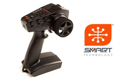 | FINISHED TRUCK BODY The sleek truck body features a high downforce wing and comes with an exclusive EXB matte and gloss effect factory finish. | Spektrum DX3 2.4GHz Smart DSMR® Radio System Smart-ready SR6110AT receiver On-the-fly adjustable AVC® (Active Vehicle Control) gain for personalized handling set-up Ergonomic steering wheel for precise control in all conditions Convenient voltage level indicator for Spektrum Smart batteries Convenient handbrake button for on-demand drifting |