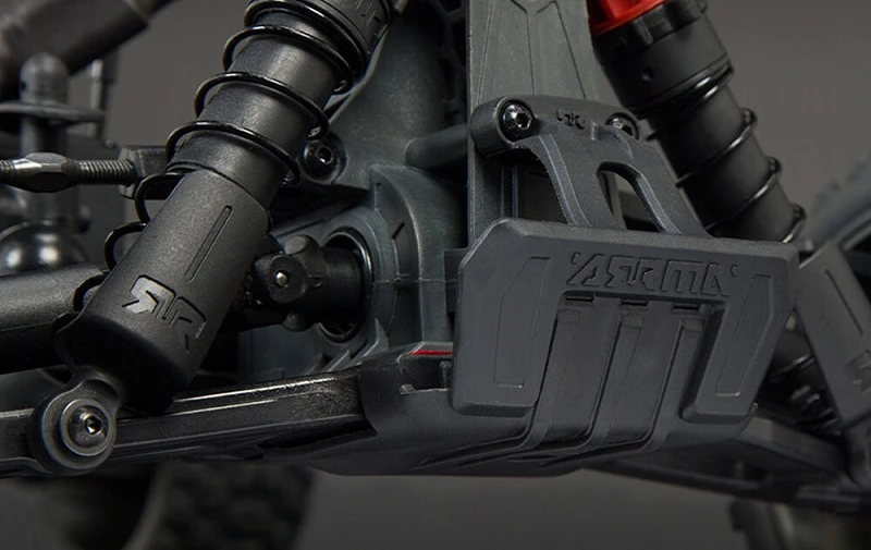 The differential module houses each differential unit in an innovative yoke design. Only eight screws need to be removed to release the front and rear yokes. The power module can then be detached, allowing you to pivot the gearbox cases for differential access. The TYPHON 4X4 3S BLX RTR comes brushless-ready with 37T 1.35mod diffs with silicone O-rings. The large gears can withstand huge torque, and internal metal gears have been chosen for reliability during extreme bashing.