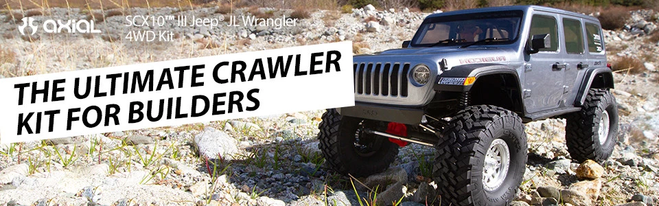The 1/10 scale Axial® SCX10 III Jeep® JL Wrangler 4WD kit marks the next step forward in scale off-road action. While continuing to incorporate key components that have made SCX10 vehicles successful, the SCX10 III increases chassis realism with details that include a replica V8 engine to house the front-mounted 540 motor. It’s mated to a realistic transmission housing and transfer case, like a 1:1 vehicle.