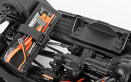 Chassis tray accepts full-size, standard LiPo or NiMH batteries, with space on the side rails for running small pack sizes