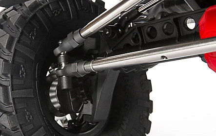 The suspension geometry is based on the SCX10 II but refined slightly for the new chassis layout. The front suspension has been optimized to reduce bump steer, while the rear 4-link reduces torque twist.