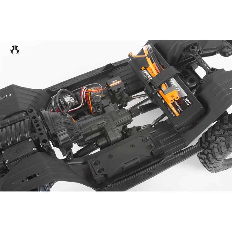 The SCX10 III Jeep® JL Wrangler has a standard battery tray that accepts full-size standard LiPo or NiMH packs. There’s space on the side rails, too, for drivers who prefer smaller size packs or need additional power for other accessories.