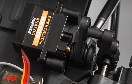The kit’s versatile transmission can be built in several ways. If you’re using a 3-channel radio like the Spektrum DX3, you can set it up with a third-channel DIG function that lets you lock the rear axle from the transmitter for front wheel drive and a tighter turning radius. Another 3-channel option is to set up the vehicle with a two-speed transmission to select between high and low speeds. To have access to the two-speed transmission and DIG function simultaneously, just add another servo and use a radio with at least four channels (such as the 5-channel Spektrum DX5).