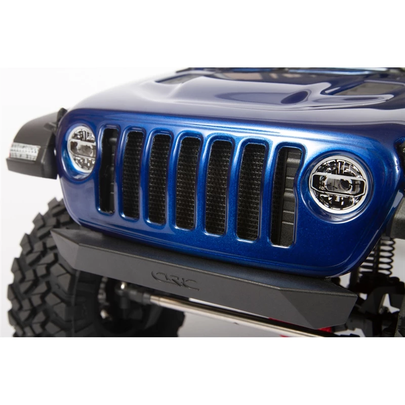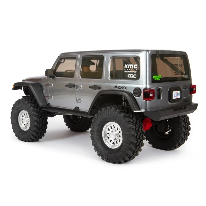To top off the chassis, the kit comes with a clear Jeep® Wrangler Unlimited four-door body that’s ready for finishing however you like. Scale details include a roll cage, front hood vents and cowl, windshield wipers, mirrors, door handles and more, plus a detailed interior. New taller and wider, officially licensed Nitto Trail Grappler tires on 3-piece licensed KMC Machete beadlock wheels add more scale realism and more grip on dirt, rocks, and all other off-road trails.
