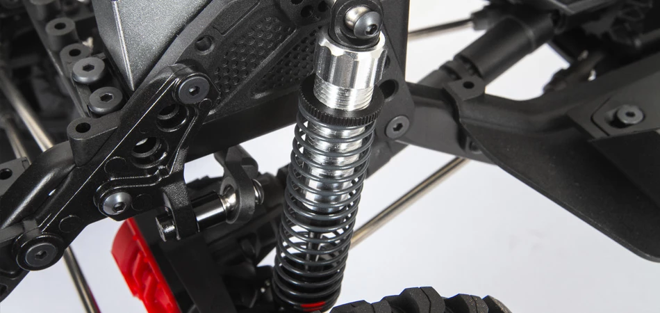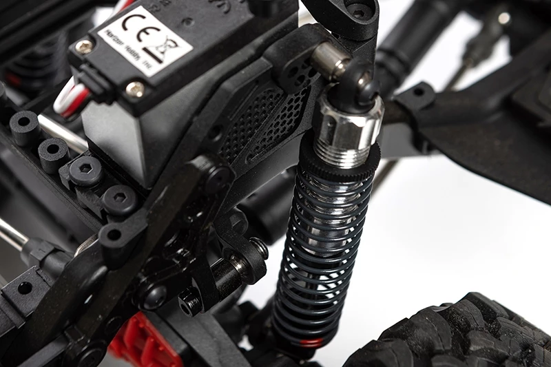 Stiff SCX10 III steel C-channel chassis reduces frame flexing and increases suspension movement precision.