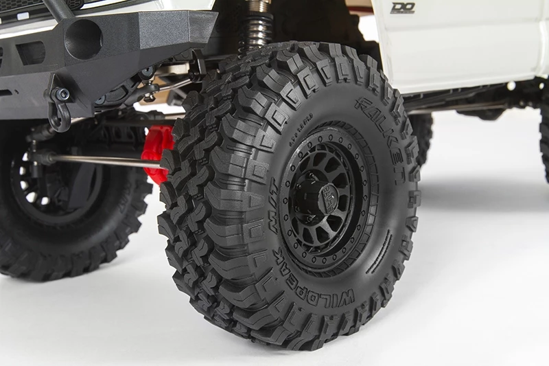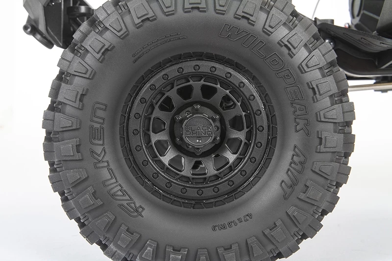 Officially licensed Black Rhino wheels add scale looks. The R35 compound Falken Wildpeak tires included with the SCX10 III Base Camp 4WD provide good ground clearance and a secure grip on dirt, rocks, and all other off-road surfaces.