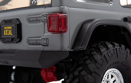 The chassis is topped off with a Jeep® Wrangler Unlimited four-door body that includes a roll cage, front hood vents and cowl, windshield wipers, mirrors, door handles and other molded-in details, plus a detailed interior and LED lighting. New taller and wider, officially licensed Nitto Trail Grappler tires on 3-piece beadlock wheels add more scale realism and more grip on dirt, rocks, and all other off-road trails.