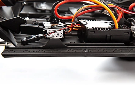 - Chassis tray accepts full-size, “standard” LiPo or NiMH batteries, with space on the side rails for running small pack sizes