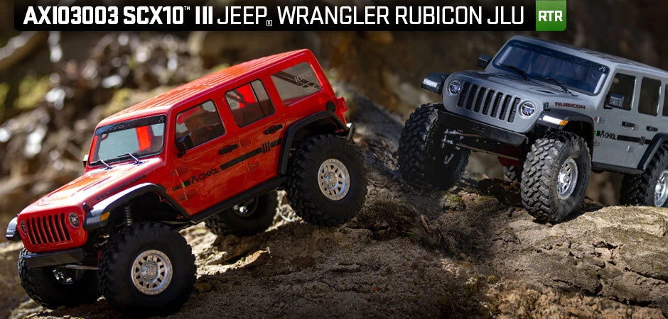 The 1/10 scale, ready-to-run Axial® SCX10 III Jeep® JLU Wrangler 4WD marks the next step forward in scale off-road action. While continuing to incorporate key components that have made SCX10 vehicles successful, the SCX10 III increases chassis realism with details that include a replica V8 engine to house the installed brushed motor. It’s mated to a realistic transmission housing and transfer case, like a 1:1 vehicle. The RTR also comes complete with the Spektrum DX3 3-channel 2.4GHz DSMR® transmitter and Firma 40A ESC/receiver for a radio system that’s ready to give you the advantages of innovative Spektrum Smart technology.