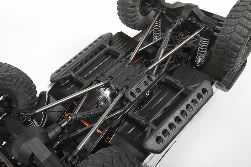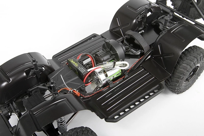 The SCX10 Wheel Wells give your rig the final missing elements: the full body look and under carriage protection. The clear polycarbonate plastic pieces provide you with enough pre-shaped material to make four wheel wells and two floor board panels, giving your SCX10 the factory look while aiding in the protection from the elements as it provides a barrier to mud, water and debris from flinging off the wheels and onto the motor and electronics. The Wheel Well kit comes clear so you can either give your rig the factory black underbody look or the full frame-off custom restoration look by painting the underbody to match the body color.