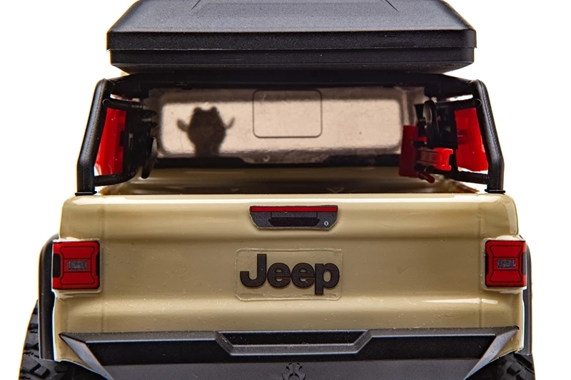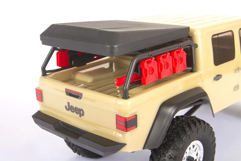 | EXTREME BODY DETAILS In addition to its officially licensed and factory-finished scale body, the SCX24 Jeep® JT Gladiator includes a detailed interior with scale driver and Tuff Stuff Overland scale accessory pack mounted to the bed rack. |