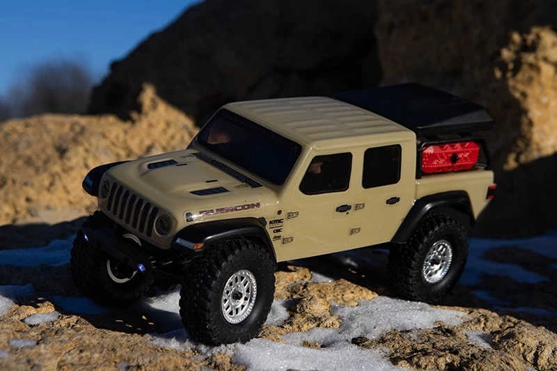 No previous radio control experience is needed because it’s easy to drive, fully assembled and ready-to-run. The truck is built on the proven Axial® SCX24 chassis, so even the most dedicated RC crawling fan will be proud to have it in their lineup. And serious scale modelers will be excited to find that the SCX24 Jeep® JT Gladiator not only looks great but performs well, too.