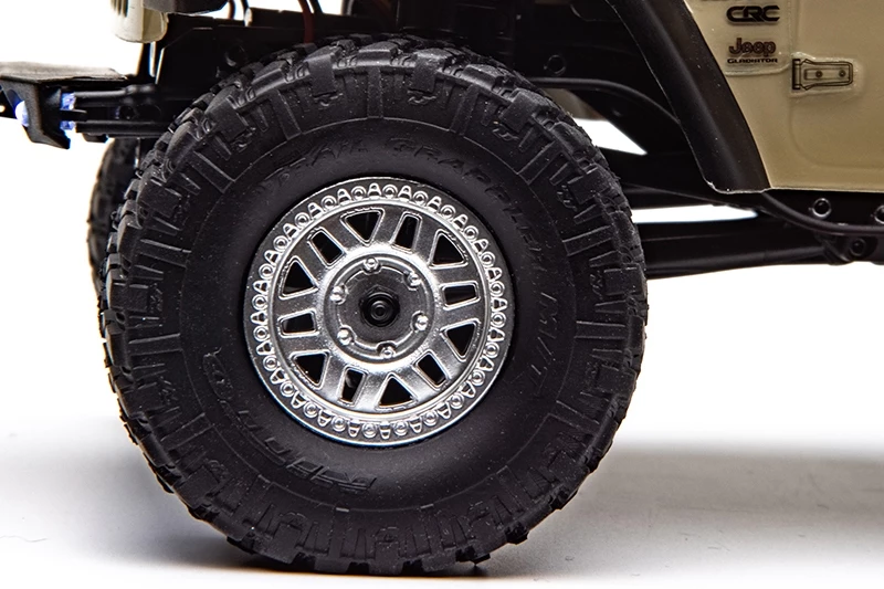 The 1/24 scale Axial® SCX24 Jeep® JT Gladiator 4WD makes any spot the perfect setting for RC adventures. If you’re stuck at work, go crawling on your desk. A messy room becomes an ideal obstacle course. Test your skills on an indoor “crawl course table” or take your SCX24 Jeep® JT Gladiator outdoors, where its water-resistant electronics are safe from the elements. You can set up an exciting trail in minutes with a few holes, twigs and rocks.