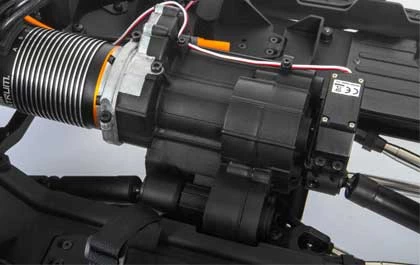 Spektrum S905 Steering Servo Included and installed, the waterproof Spektrum S905 Large-Scale Metal-Gear Servo produces impressive torque (537.72 oz-in at 6V, 555.50 oz-in at 7V) for responsive, dependable steering control. The chassis will also accept larger 1/5 scale servos, if desired, with the included adapter. |