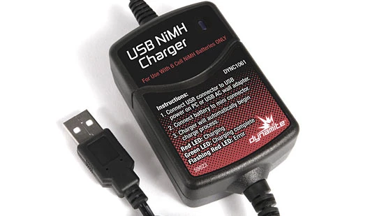 The Dynamite 6-Cell NiMH USB battery charger is small, compact, and easy to operate. Simply plug into a USB power source and plug the NiMH battery into the charger and you’re charging.