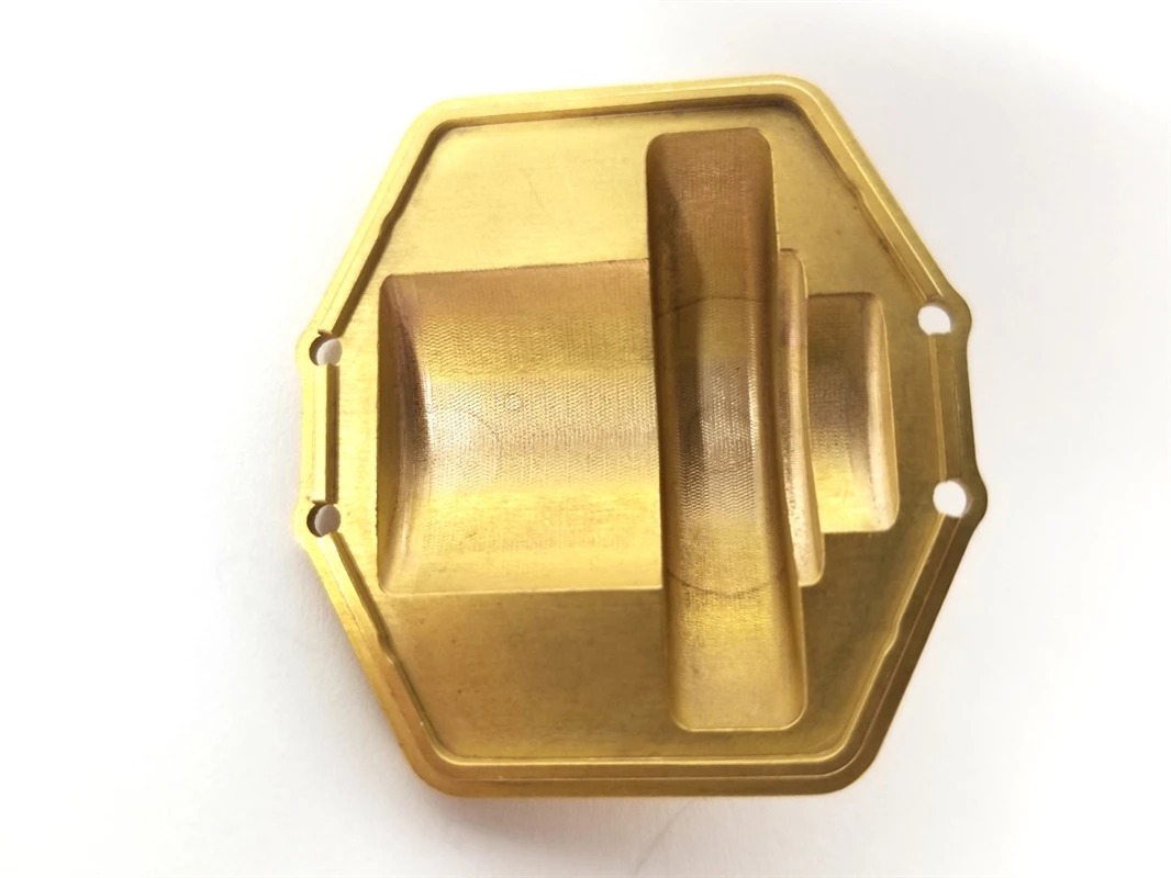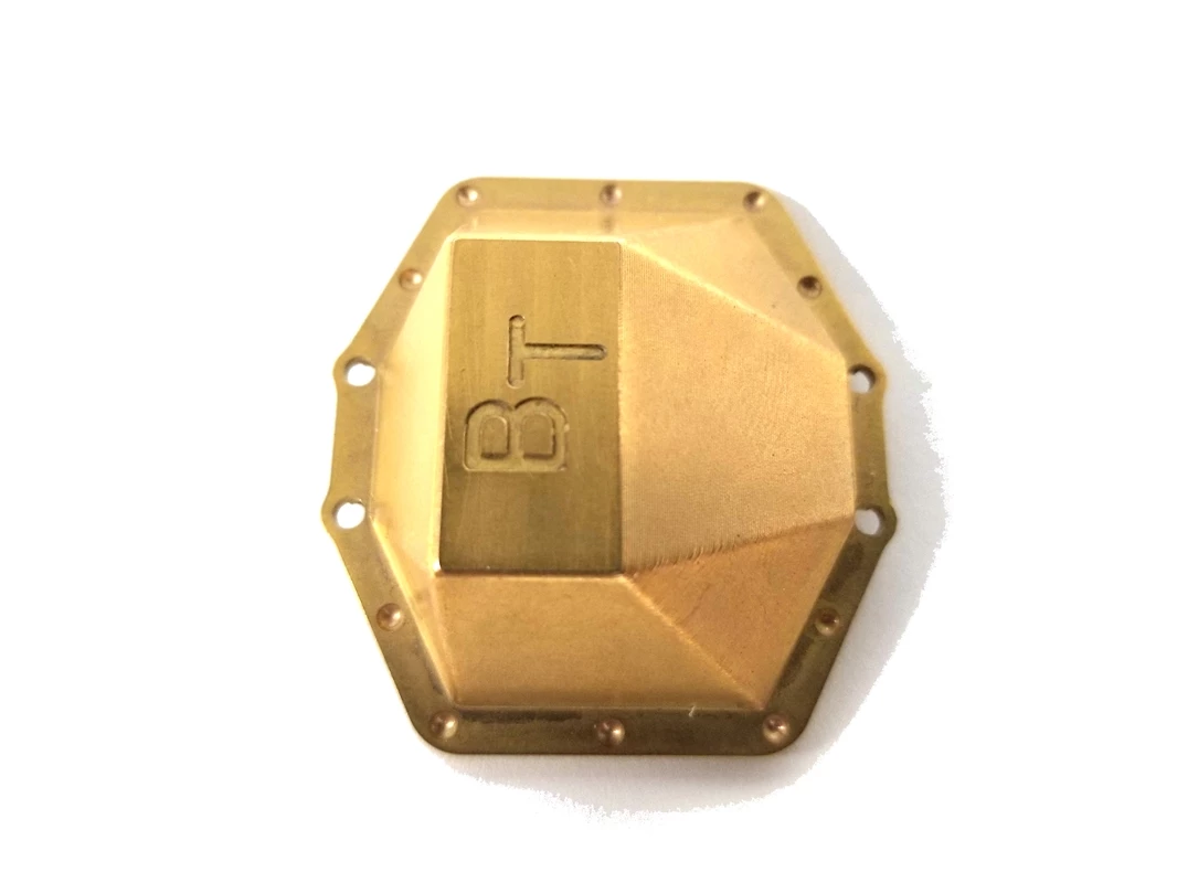 CNC machined brass differential cover with a “fabricated” appearance.