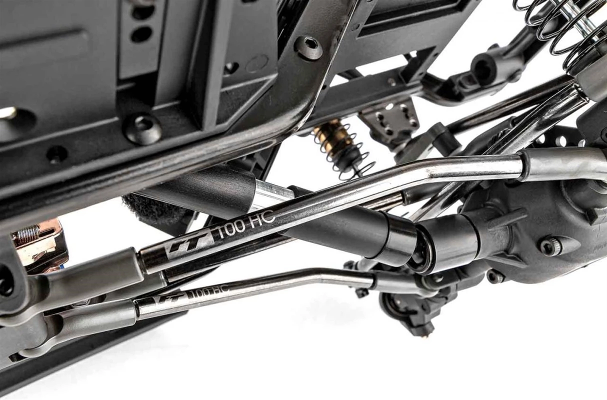 12.3″ wheelbase high-clearance links: With an updated look, our 5mm heavy-duty links are black nitrate-coated, with FT logo and length etched right on them for easy reference.