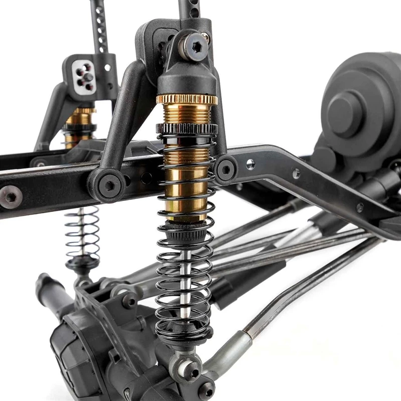 We’ve updated the Builder’s Kit 2 by including our GKSTM shock towers in front and rear. Our shock mount inserts provide the ability to adjust shock angle, droop, and vehicle ride height without affecting spring preload. Matched up with the shock mount inserts are our race-proven, ultra-smooth Factory TeamTM bronze shocks with black caps and collars–perfect for traversing rough terrain. Along with the updated shock towers, we’ve included the GKS aluminum track bar mount that is bolted directly to the frame rails. This makes the front suspension more rigid and flex-free with a more precise steering feel. Also included are updated Factory Team 12.3-inch wheelbase high-clearance links with black nitrate finish and low-friction Delrin(R) pivot balls, which are more resistant to abrasion and friction wear.