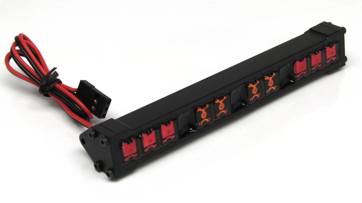 10 Ultra-bright red and yellow/amber LEDs in a Low-profile, CNC-machined Delrin (acetal homopolymer thermoplastic) housing. 4.19″ long from outside-to-outside of the mounting ears.