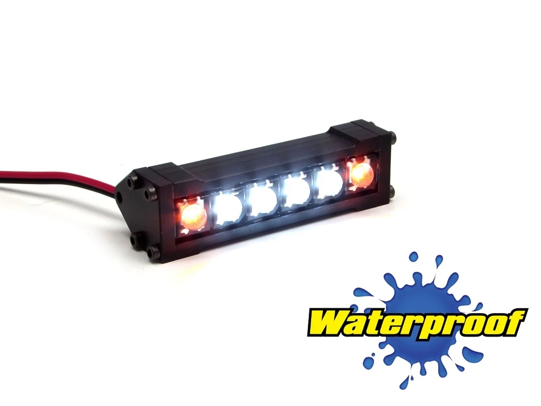 Dual color light bar 4 Ultra-bright WHITE LEDs and 2 Ultra-bright AMBER LEDs in a Low-profile, CNC-machined Delrin housing. 2.09″ long from outside-to-outside of the mounting ears.