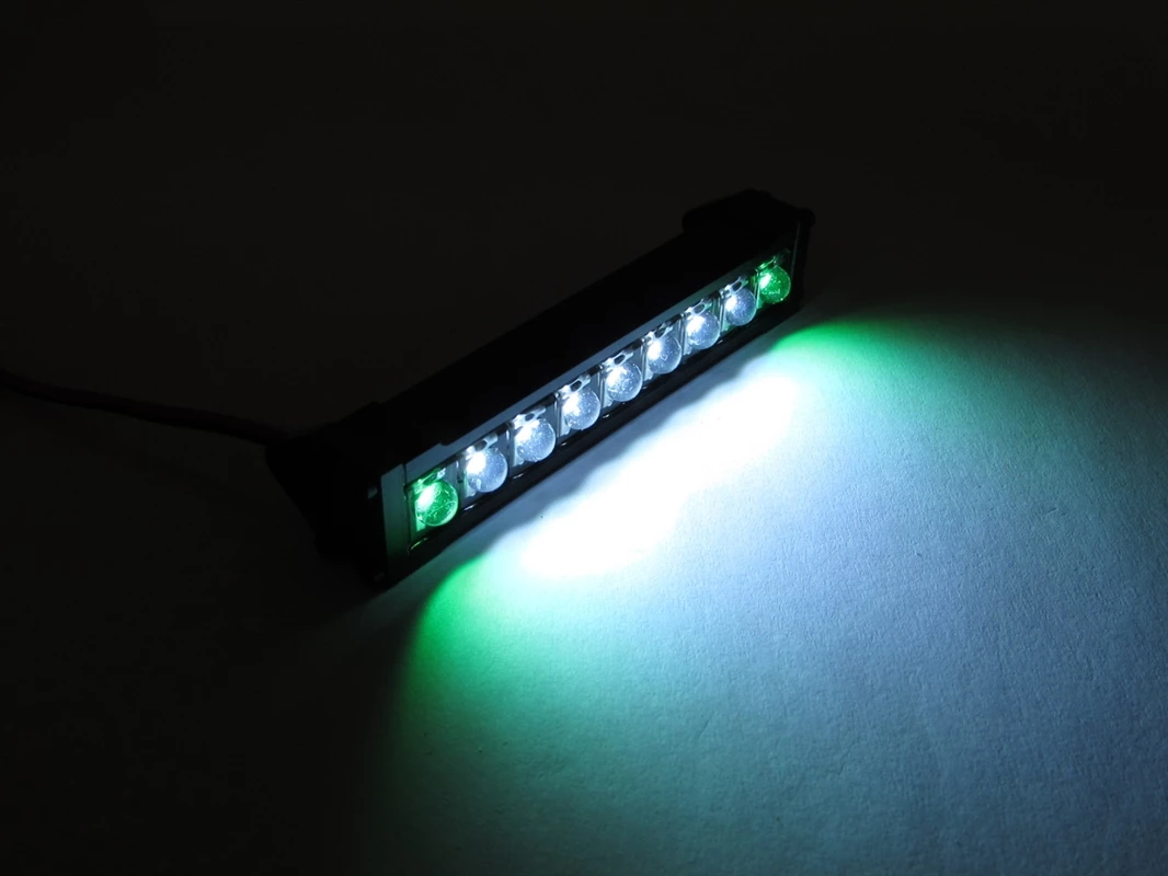 (7) Ultra-bright WHITE LEDs and (2) GREEN LEDs in a Low-profile, CNC-machined Delrin housing.