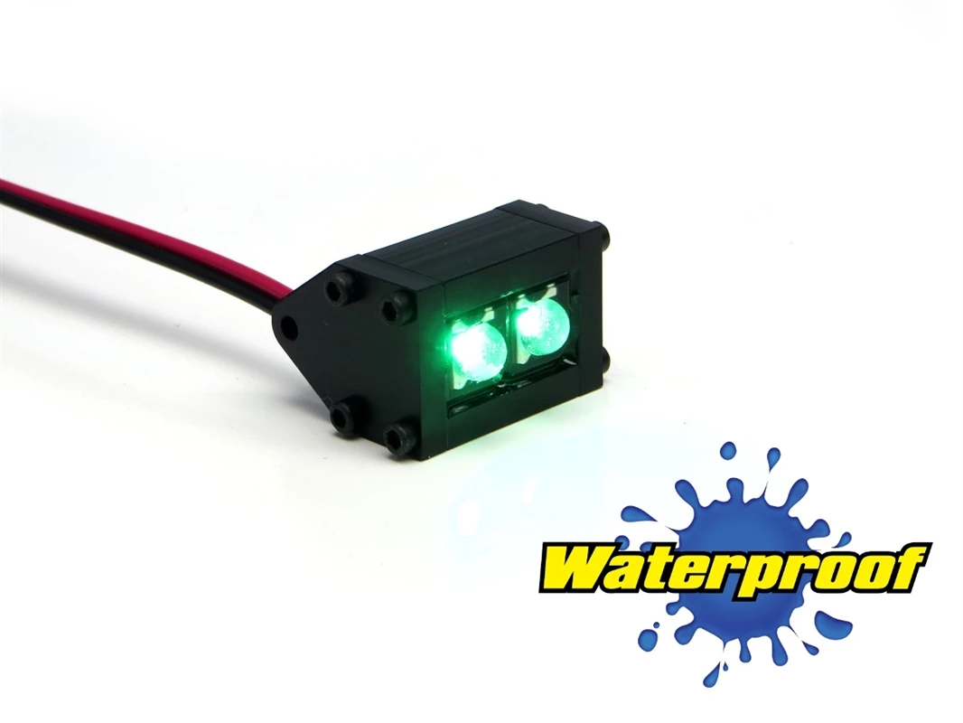 Made in the U.S.A., with (2) ultra-bright GREEN LEDs in a low profile, CNC-machined, black Delrin housing. 0.89″ long from outside-to-outside of the mounting ears. Includes (1) Trail Pod.