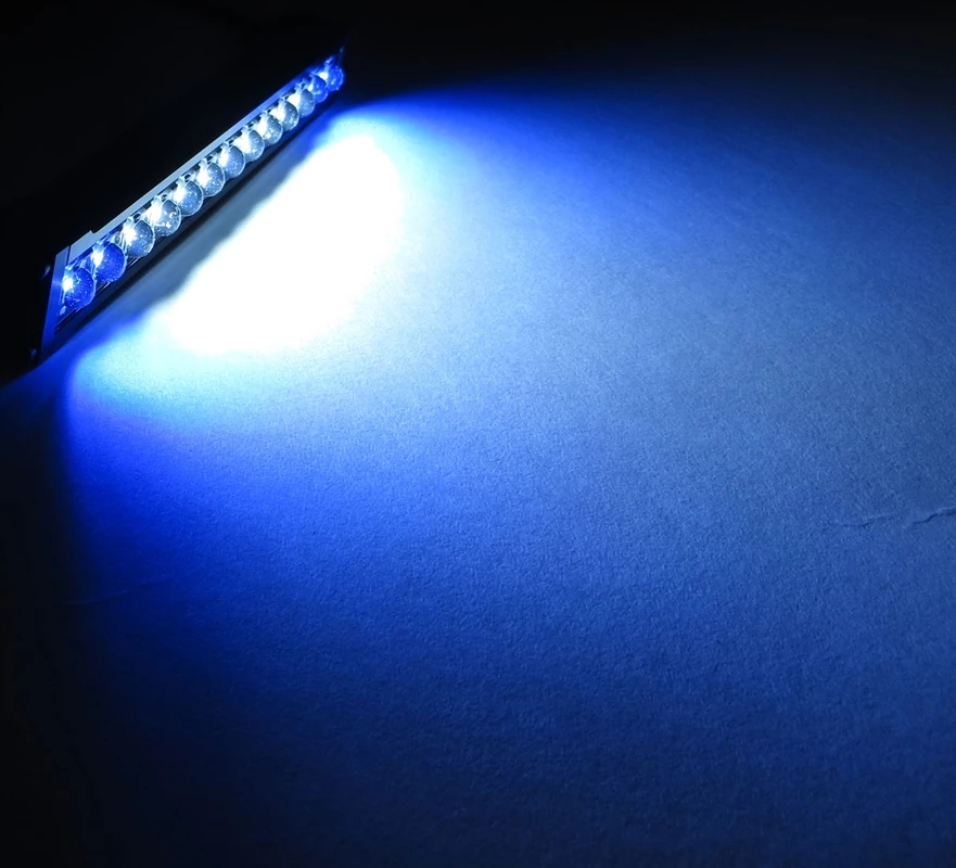 Dual Color LED Light Bar has (9) ultra-bright White LEDs and (4) ultra-bright Blue LEDs in a Low Profile CNC Machined Delrin housing