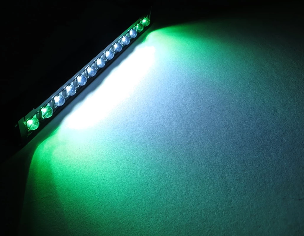 Dual Color LED Light Bar has (9) ultra-bright White LEDs and (4) ultra-bright Green LEDs in a Low Profile CNC Machined Delrin housing