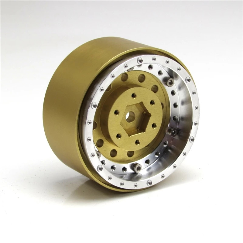 Set of (4) 1.9, CNC-machined, gold anodized aluminum wheels with aluminum beadlock rings. The EZ-Loc beadlock design makes mounting even the most difficult tires a breeze.