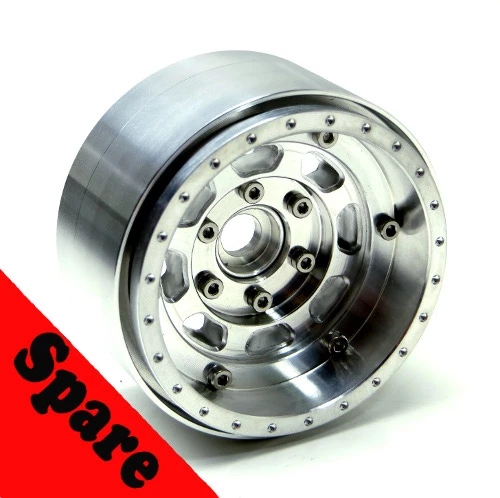 (1) Spare 1.9, CNC-machined, aluminum wheel with (1) aluminum hub, (2) aluminum beadlock rings and screws.