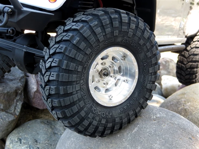 Set of (4) 1.9, CNC-machined, aluminum wheels with aluminum hubs and aluminum beadlock rings. EZ-Loc beadlock design makes mounting difficult tires a breeze! Design is reversible, so you can choose between two offsets without having to change hubs.