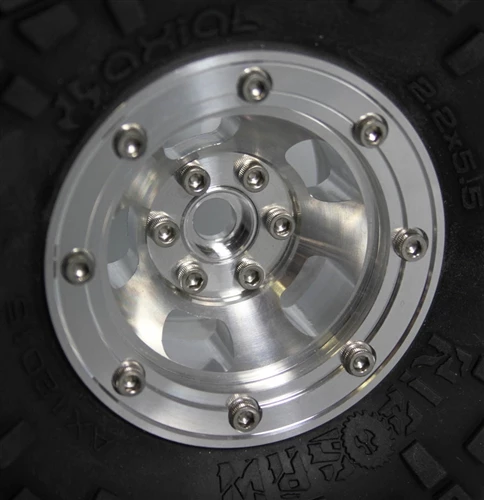 Set of (4) 2.2, CNC-machined, aluminum wheels with aluminum hubs and aluminum beadlock rings.Our Slot Mag wheels are a tribute to a classic wheel design. Plus, their substantial weight (6 oz./170 g each!) adds weight down low, where you need it.