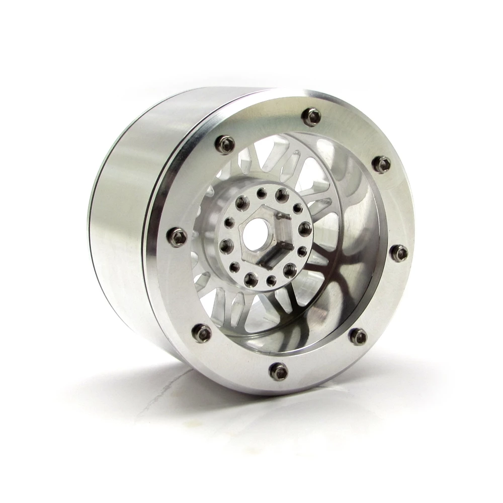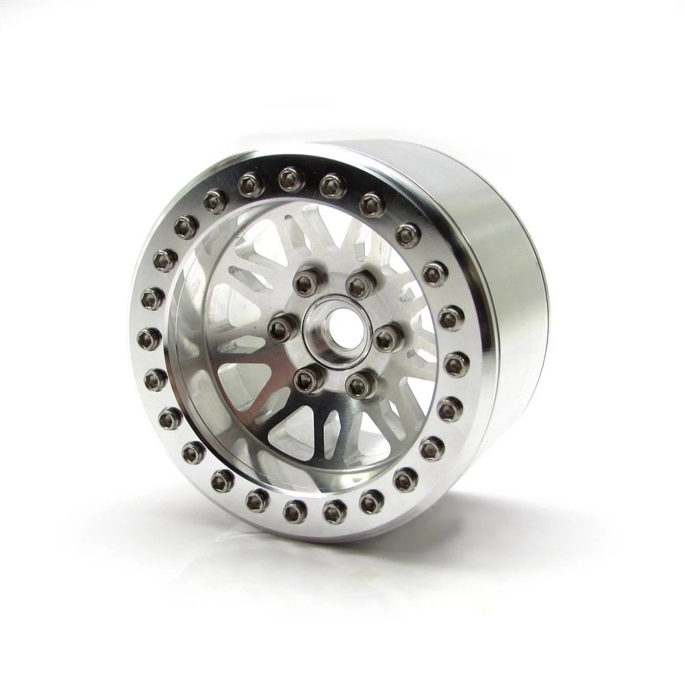 (4) 2.2, CNC-machined, aluminum wheels with (4) aluminum hubs and (8) aluminum beadlock rings. Wheel is SILVER (natural), outer ring is SILVER (natural).
