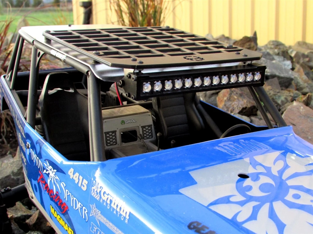 Wraith Combo includes a laser-cut Slim Line Roof Rack, LED light bar plus brackets and hardware for mounting the Trail Torch to the Axial Wraith.