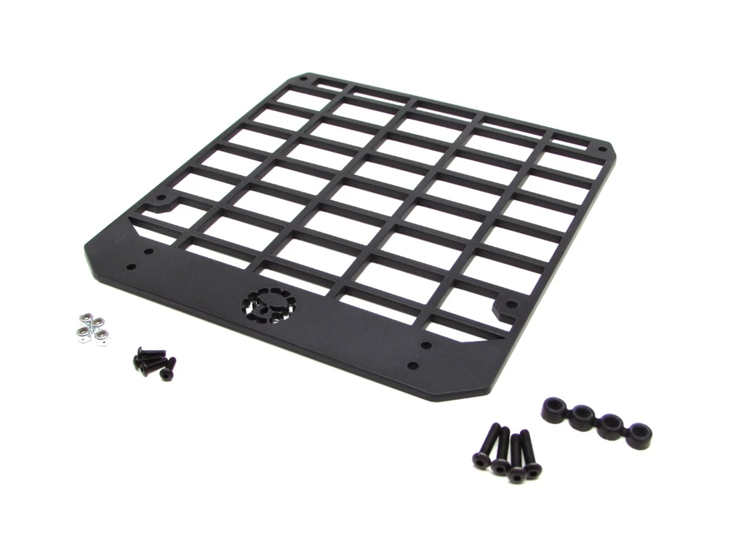 Laser-cut from durable black Delrin – no need to worry about paint scratching off.Rack is 5.0″ wide x 5.3″ long.Includes (4) M2.5 screws and (4) spacers to mount directly to the Axial Wraith roof, using the existing holes in the cage. Fits both full-roof and fastback-modified Wraiths.