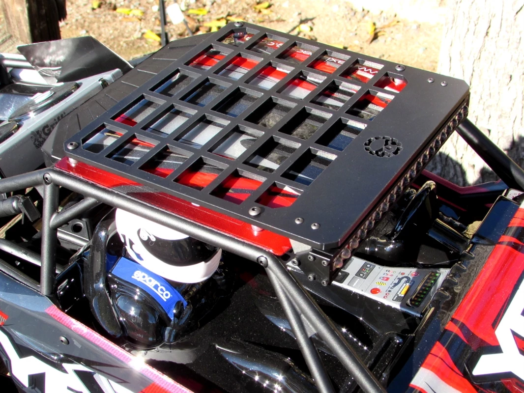 Laser-cut from durable black Delrin (acetal homopolymer thermoplastic) so there is no need to worry about paint scratching off. Rack is 6.50″ wide x 6.20″ deep.Includes (4) M3 screws, (4) spacers and (4) M3 lock nuts to mount directly to the Axial Yeti XL roof and cage. Kit also includes (4) M2 screws and (4) M2 lock nuts.