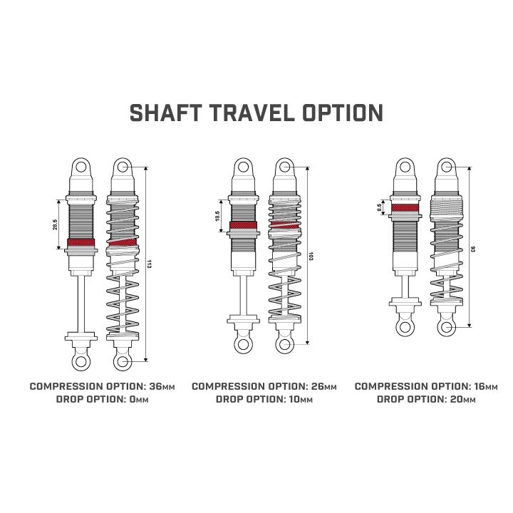 Full Shaft Travel Range: 36mm (without Rubber bump stop)