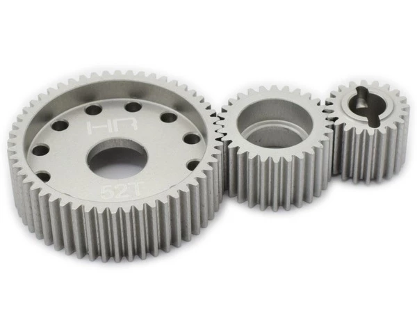 Hot Racing optional light weight aluminum transmission gear set for three-gear transmissions found in the Axial AX10, SCX10, SCX10 II (RTR only), SMT10 monster, and Wraith.