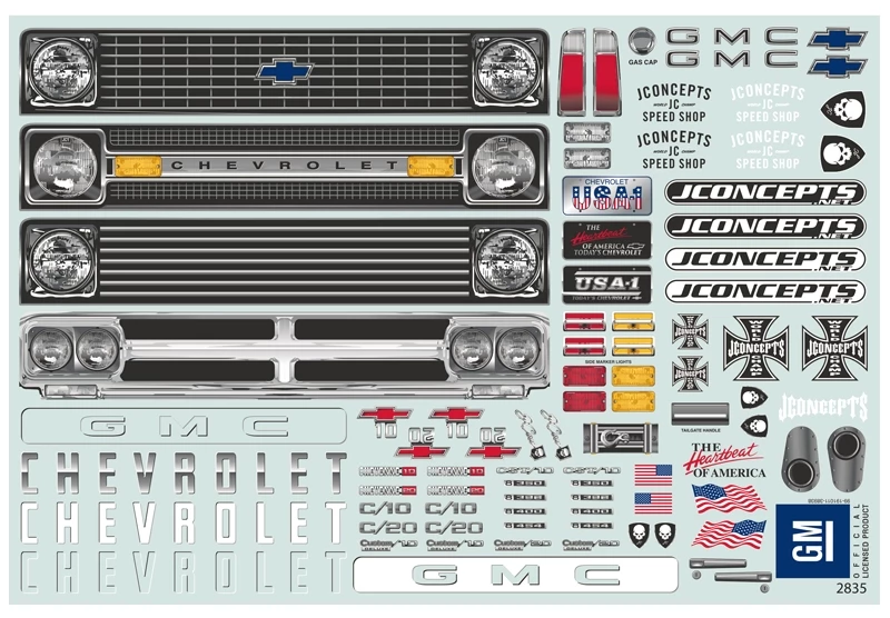 The years 1967-1972 showed a lot of looks through Chevrolet and GMC variants. With small changes to grille, headlights, and trim packages throughout the years, JConcepts has added a bonus to the included decal sheet. An incredible 4 different grille options are included on the sheet giving the user the option of their favorite package from yesteryear. Hard panned single headlight and double light bezel setups are included which contain bar and tube grille combinations. In addition, a plethora of badges are offered on the sheet featuring Cheyenne, Custom, C/10, C/20, and CST/10 combinations.