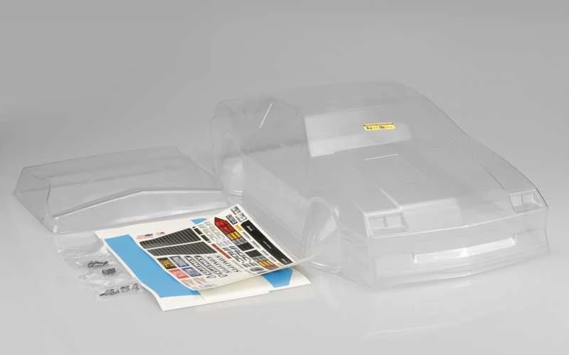 The 1987 Camaro has a large one-piece rear window matching the 1:1 version giving a placement area for a variety of body mounting on the market including the Drag Slash. The rear bumper area has been dove-tailed for additional air-escape out of the rear, but placement remains for the taillights and personalized license plate zone. The rear wing is created in panels for more rear over-hang, small side-dams, and rear gurney performance. The assembly with included hardware builds like a race-car with 3mm screws and light-weight plastic nuts.