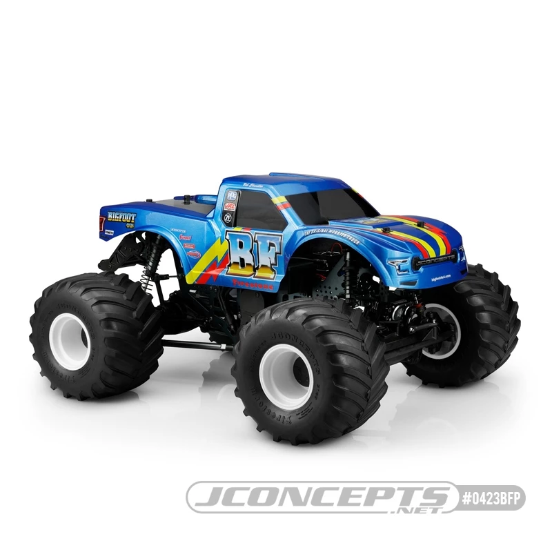JConcepts lowers the boom on the latest body for Losi LMT and Axial SMT10 vehicles. The BF Power logo is a collaboration between JConcepts and the gracious BIGFOOT 4X4 team on a fantasy style and fan inspired scheme. The identity is produced to lay out on the JC PN #0423, 2020 Ford Raptor body which is popular in the RC and full-size monster truck community. As one of the best performing and most accurate body shells on the market, the Raptor fits well and allows the trucks to reach their maximum potential.