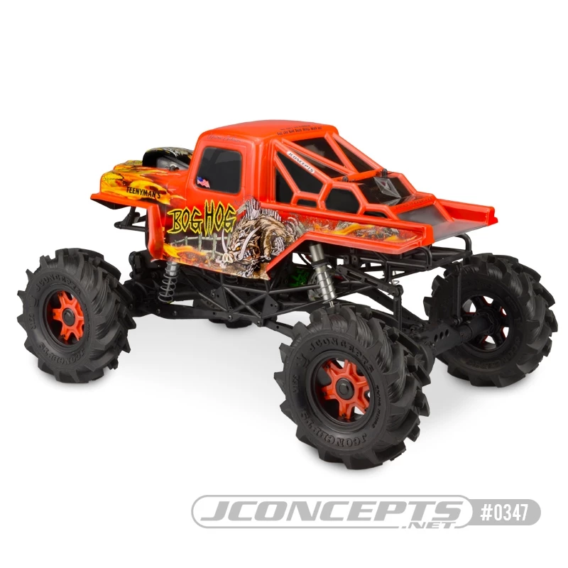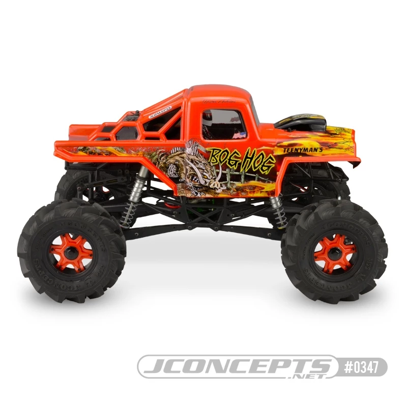 Bog Hog, has a wild side, combining the brute power and durability of a monster truck with the madness of a mud racer. Bog Hog is a beast, and JConcepts has worked together with designers and builders to replicate this body shell to fit on a host of popular chassis including the Axial SMT10.