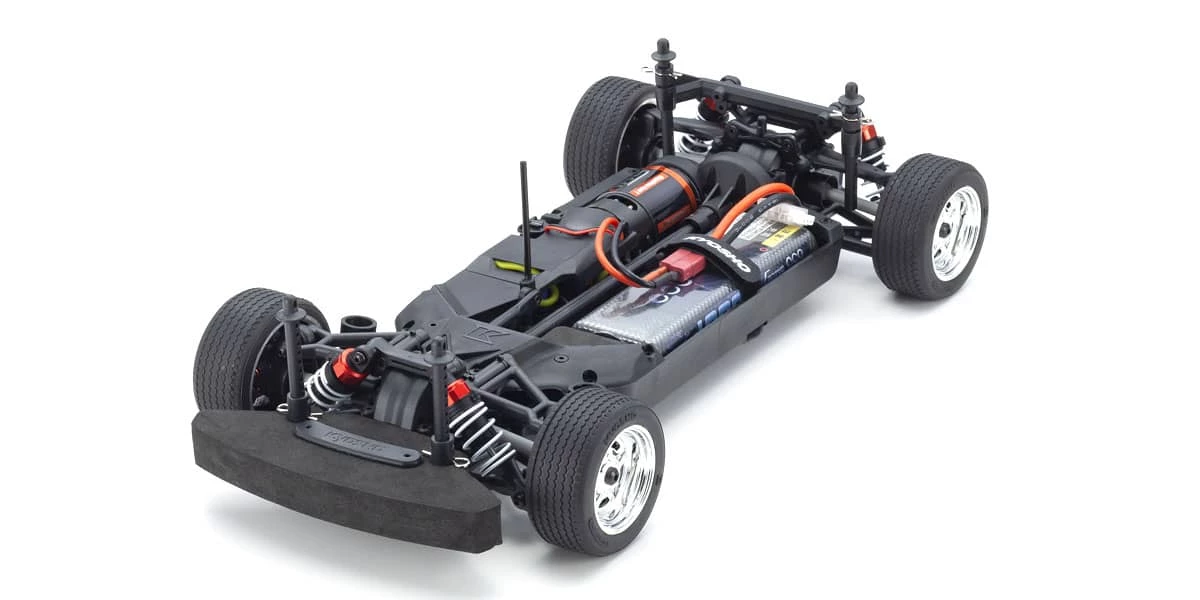For the pure enjoyment of R/C car driving, the combination of a beautifully reproduced car body with the FAZER series chassis cant be beaten. Kyosho has taken its standard touring car chassis and given it a full model makeover that has evolved performance to a new level. A simplified design with fewer parts has improved maintenance efficiency and reduced weight while core strength and rigidity has been increased through new materials and ribbing and stiffeners on front and rear. In addition, the symmetrical chassis design synergizes excellent front-rear balance through the suspension with responsive control, irrespective of power source. Featuring slipper clutch, front & rear gear differentials, oil shocks and full ball bearing specs, the high durability and impact resistance allows drivers to unleash the full potential of the chassis. Brake disc wheel hubs with two different offsets (0mm, +5mm) provide compatibility with 190mm and 200mm width body styles and allows the wheelbase to be adjusted to 260mm by replacing some parts (sold separately) for compatibility with other 1/10 scale body styles, in addition the body included. The Readyset package comes fully assembled and includes everything except charger and battery for the chassis, and batteries for the transmitter.