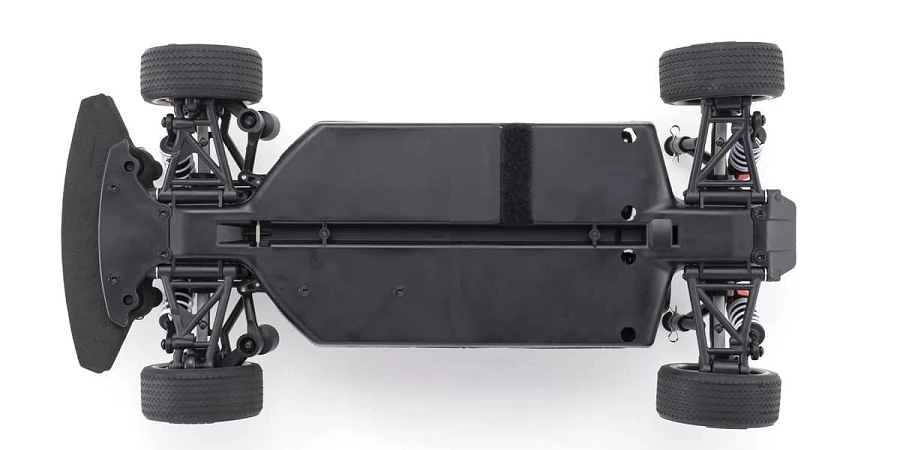 Completely new chassis realizes low center of gravity with its simple, functional design. Featuring an integrated gearbox that optimizes torsional rigidity of the main chassis, the nylon material reduces weight while improving impact resistance. Each key component has been reinforced in this simple design without upper deck.