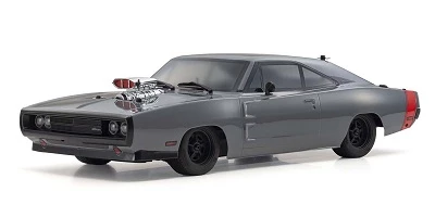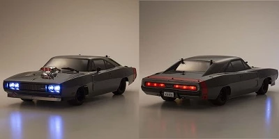 | Features VTA tires with compound optimized for brushless motor performance in combination with new color Rostyle type wheels. | Defining the era of American muscle, the unique characteristics of the ever-popular Dodge Charger have been recreated with concealed headlights equipped with open/close function (operated by optional micro servo on 3rd channel) and the Kyosho designed supercharger. The coke-bottle lines of the semi-fastback 2-door hardtop is immaculately reproduced in a 1/10 scale polycarbonate body. |